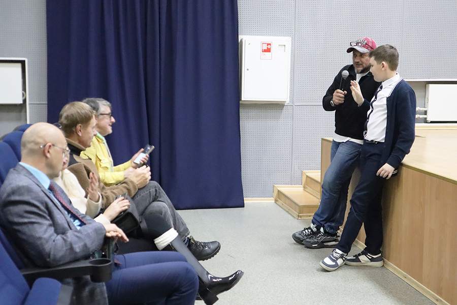 Собравшихся в зале школьников приветствовал заместитель главы администрации Задонского района - Сергей Александрович Орусь. А в гостях были кинорежиссеры и финалисты фестиваля.