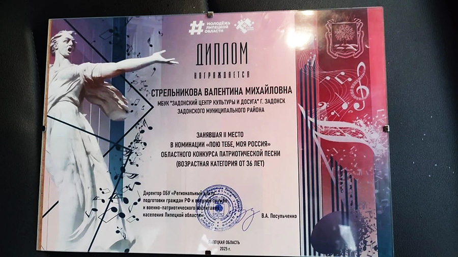 5 ноября ВИА "Архив" Задонского Центра культуры и досуга принял участие в Областном конкурсе патриотической песни, который проводил Региональный Центр подготовки граждан РФ к военной службе и военно-патриотического воспитания населения Липецкой области.